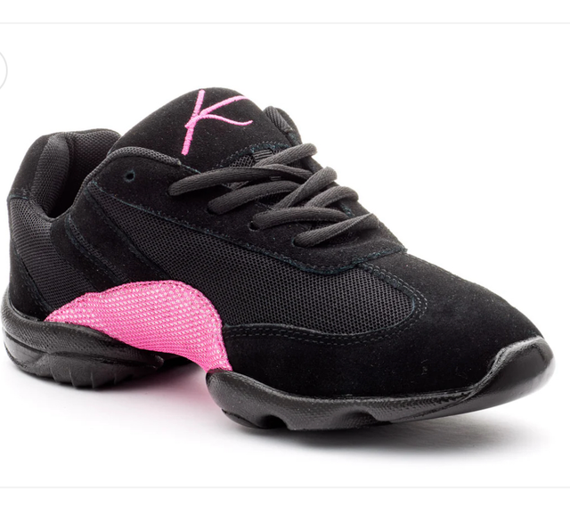 Black and Pink Sparkly Lace Up Split Sole Jazz Dance Practice Shoes Sneakers Trainers