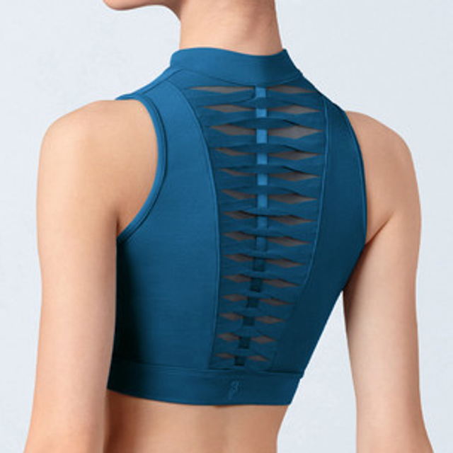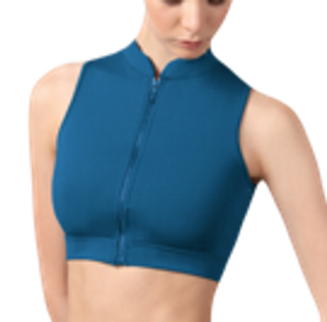 Mock neck zip front crop top -Peacock- Bloch
