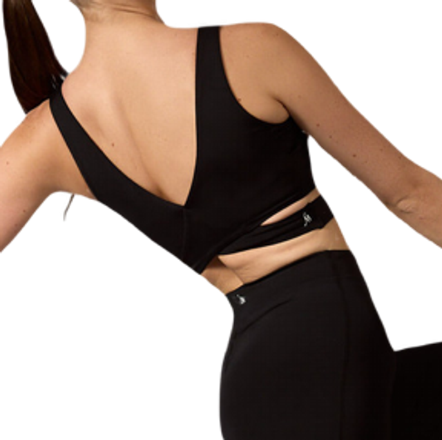 Crafted in 67% recycled performance fabric, the Naya top is soft and stretchy, moving with you as you dance. Featuring shelf bra lining and removable cups so you'll feel comfortable and confident. The Naya top is your go-to for a sleek look with a sporty edge, the illusion cut-out adds a bold and modern touch. The cross-over back detail and scoop neckline is flattering and stylish.